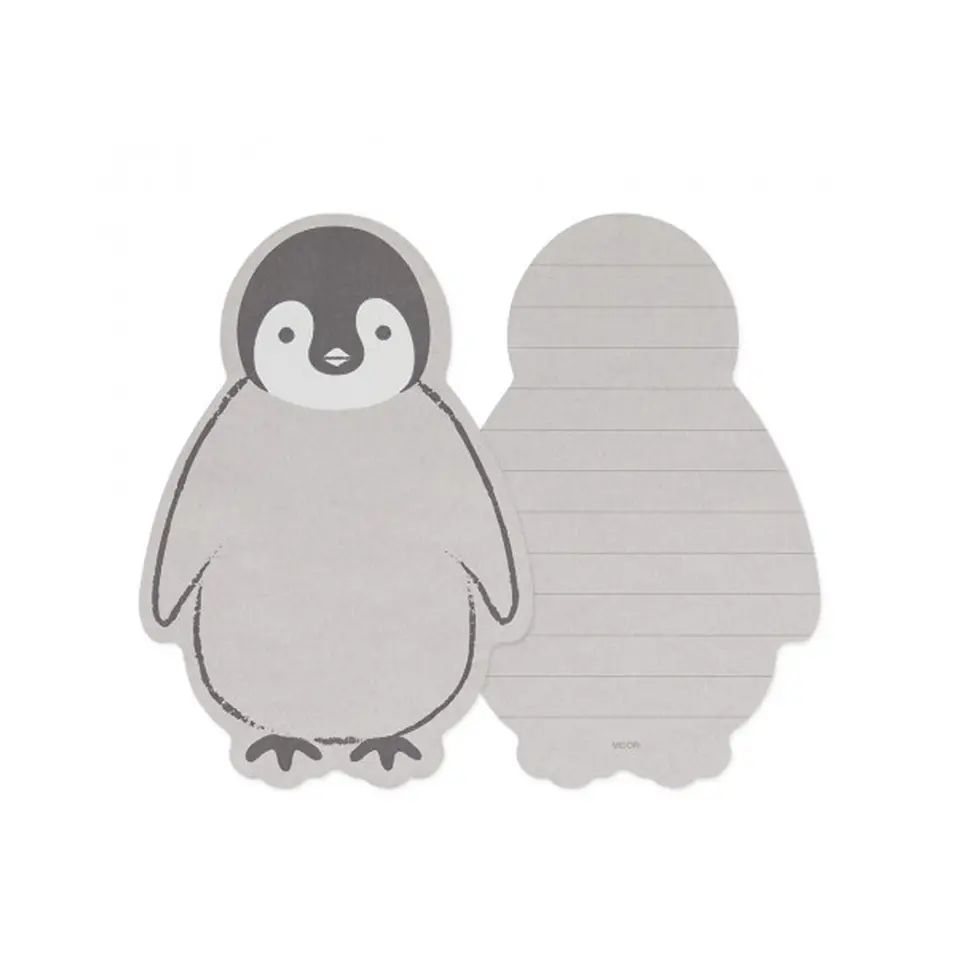 Roztomilá dopisní sada s listy ve tvaru tučňáka a obálkami s jemným vzorem.